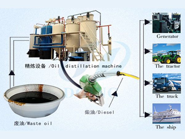 Re-refined motor oil machine is used to refine various kinds of used motor oils into diesel-like fuel. We can provide different solutions to customers on used motor oil refining according to used motor oil quality and customers’ actual situation.