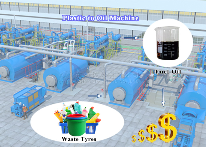 As we mentioned above, the most effective way to dispose of white pollution is to convert it into fuel oil. Plastics are actually polymerized by small molecules in petroleum, therefore, waste plastics pyrolysis plant can convert plastics into fuel oil through pyrolysis. Pyrolysis occurs under high temperature and oxygen-free conditions, so the pyrolysis process will not pollute the environment. The technological process of Henan Doing Waste Plastics Pyrolysis Plant is to send waste plastics into the pyrolysis reactor and use fuel to heat the reactor; when the waste plastics are pyrolyzed into oil gas, the oil gas is cooled into fuel oil by four-stage cooling system. The entire production process is safe, environmentally friendly and pollution-free.